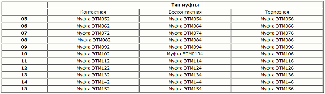 ХХ - габарит муфты: 05, 06, 07, 08, 09, 10, 11, 12, 13, 14, 15;
